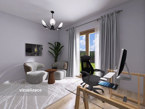 Je zde možnost instalace krbu nebo krbových kamen (na místě v obývacím pokoji, kde je zesílená podlaha).