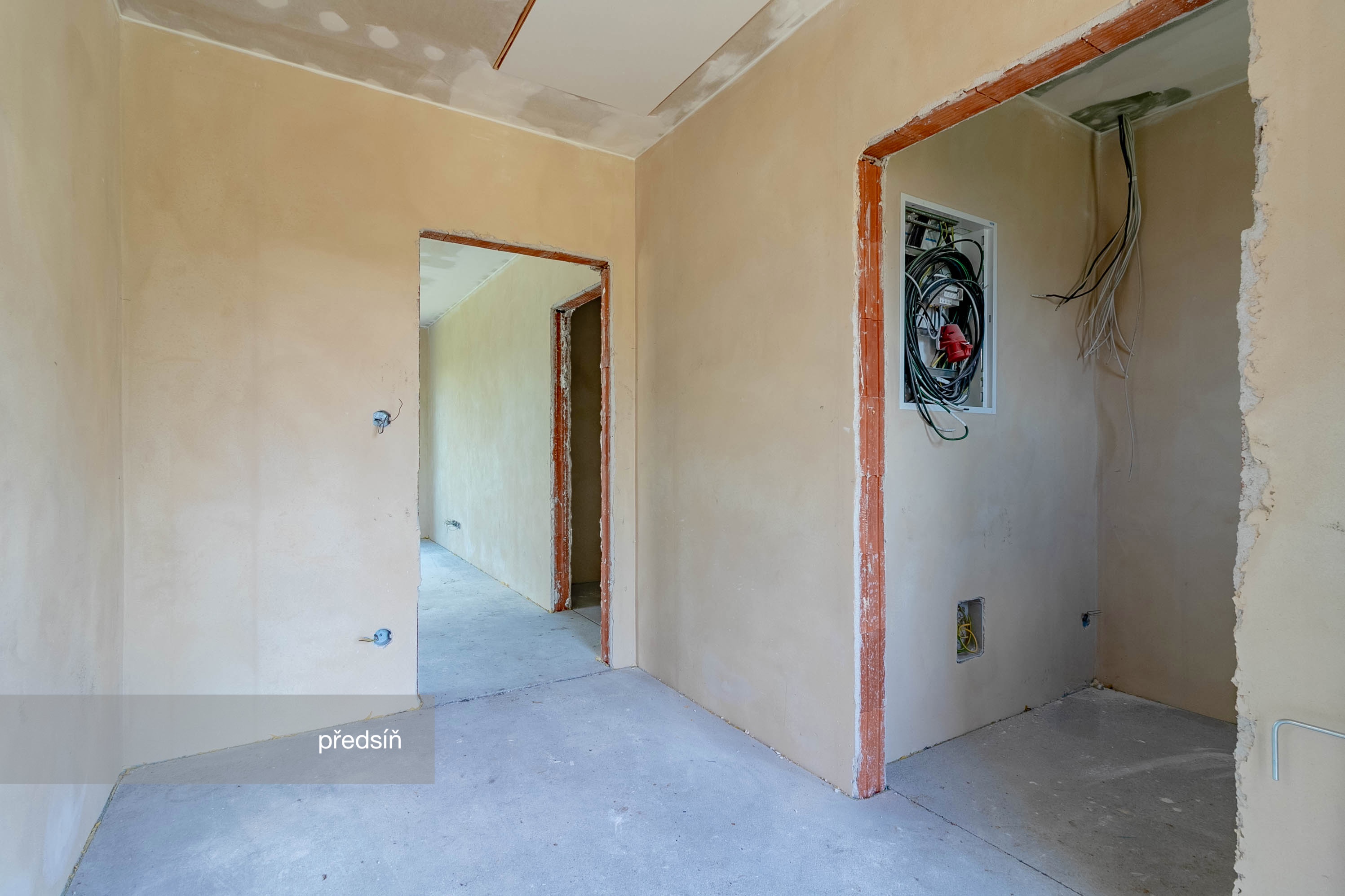 Je zde možnost instalace krbu nebo krbových kamen (na místě v obývacím pokoji, kde je zesílená podlaha).
